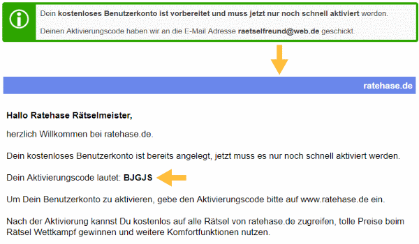 Diesen Aktivierungscode gibst Du auf ratehase.de ein: