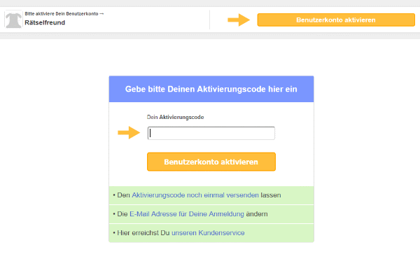 • Klicke bitte im Kopfbereich von ratehase.de auf die Schaltfläche "Benutzerkonto aktivieren".