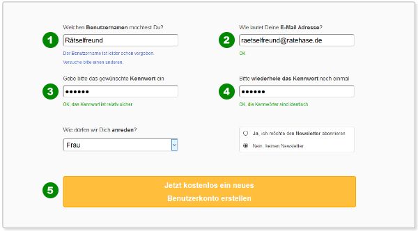 Du brauchst dafür nur einen Benutzernamen, eine E-Mail Adresse und ein Kennwort - Fertig ist dein persönlicher Rätsel Spaß.